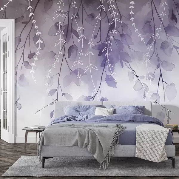 Fototapeter Grener med blader i akvarellstil, naturlige lilla farger Nr. w04007v2