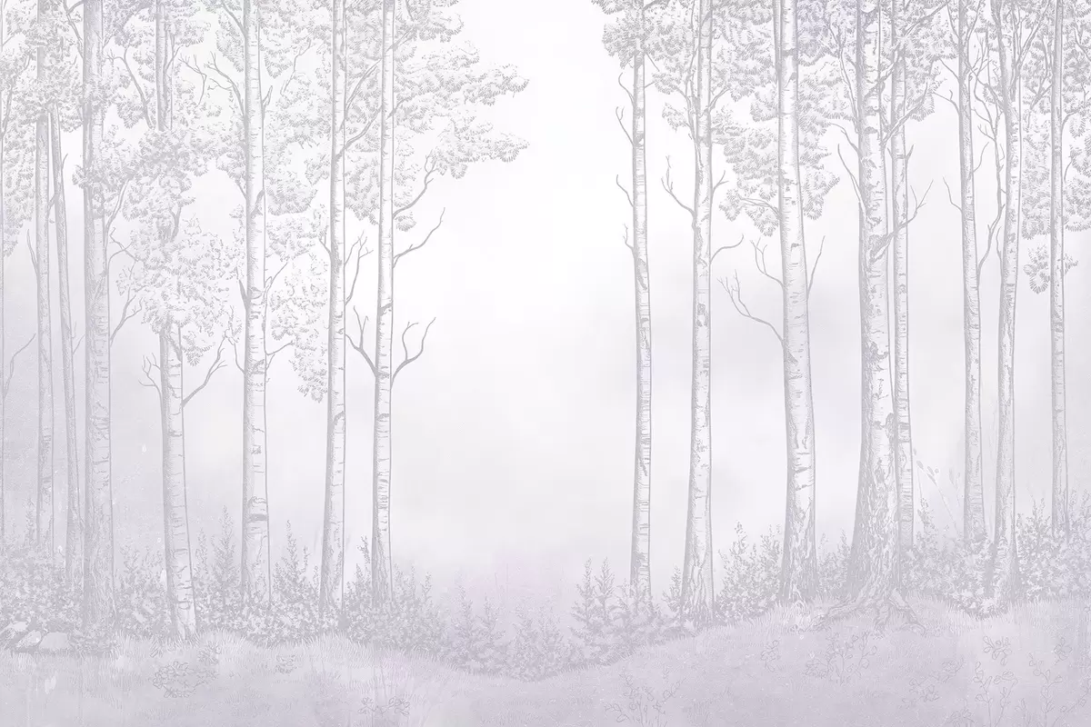 Fototapeter Skog med bjørketrær, minimalisme, natur, rosa fargepalett Nr. w04009v2