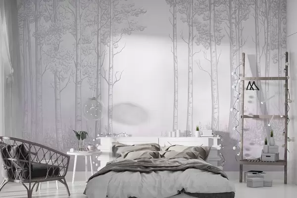 Fototapeter Skog med bjørketrær, minimalisme, natur, rosa fargepalett Nr. w04009v2