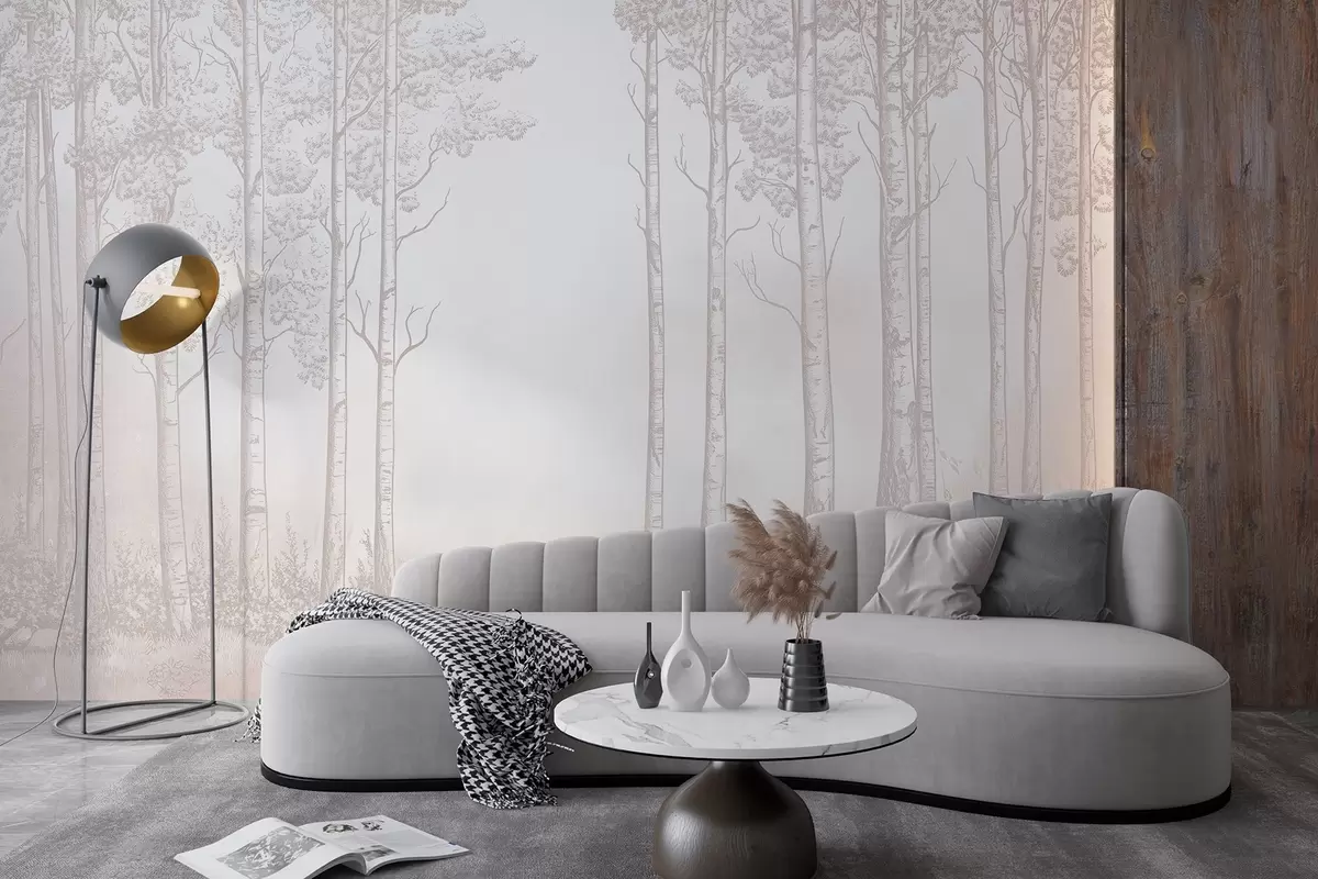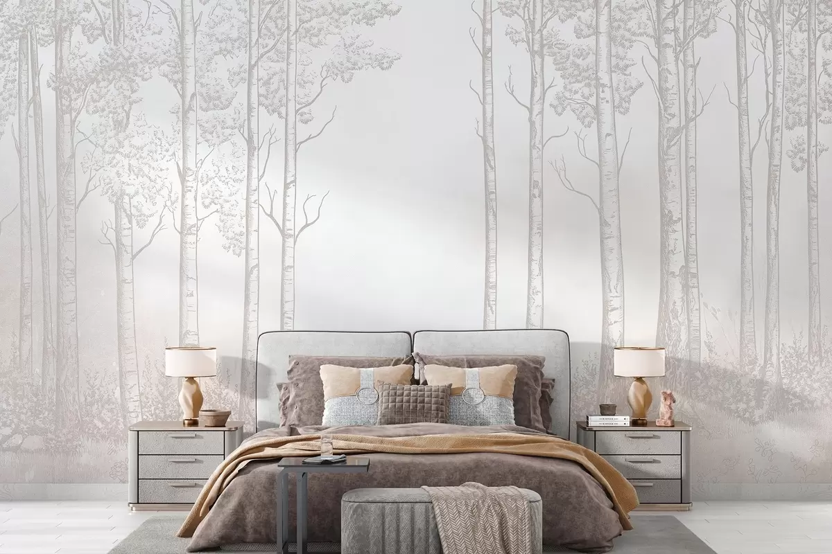 Fototapeter Skog med bjørketrær, minimalisme, natur, beige fargepalett Nr. w04009v3