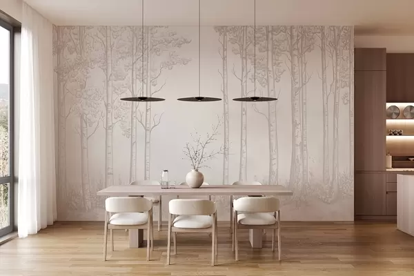 Fototapeter Skog med bjørketrær, minimalisme, natur, beige fargepalett Nr. w04009v3