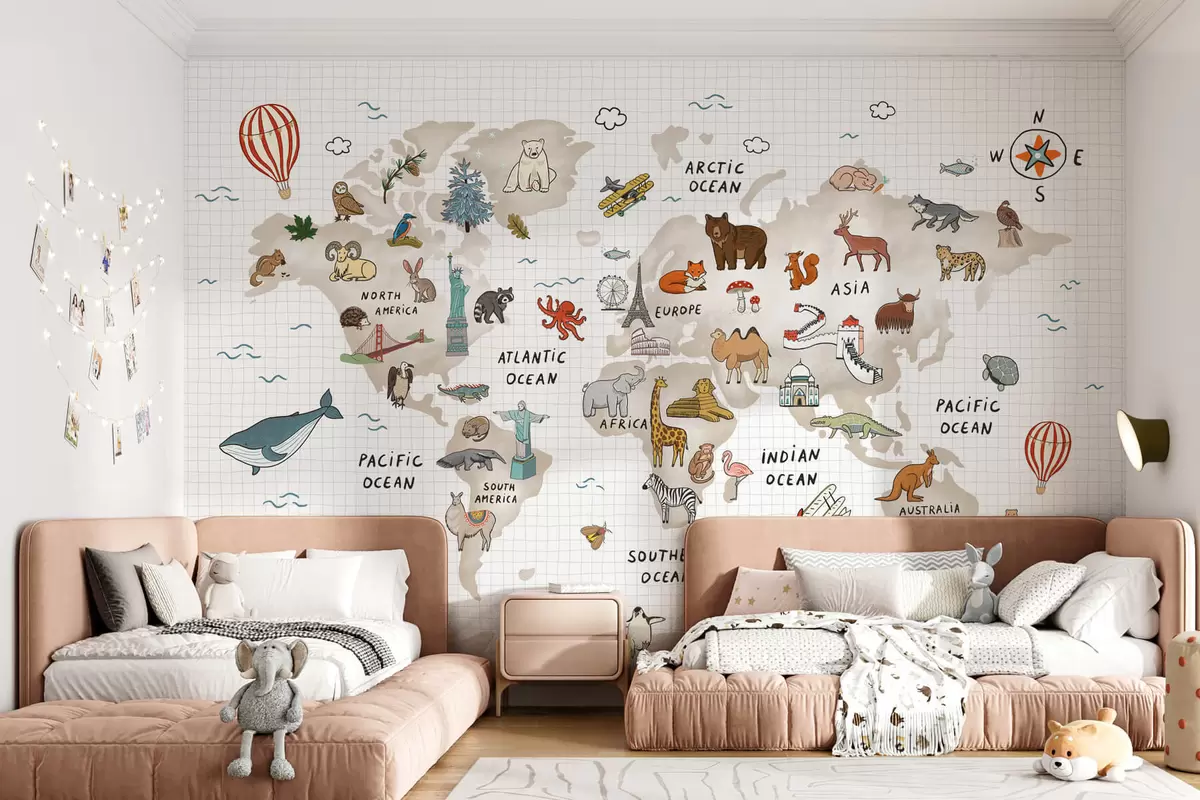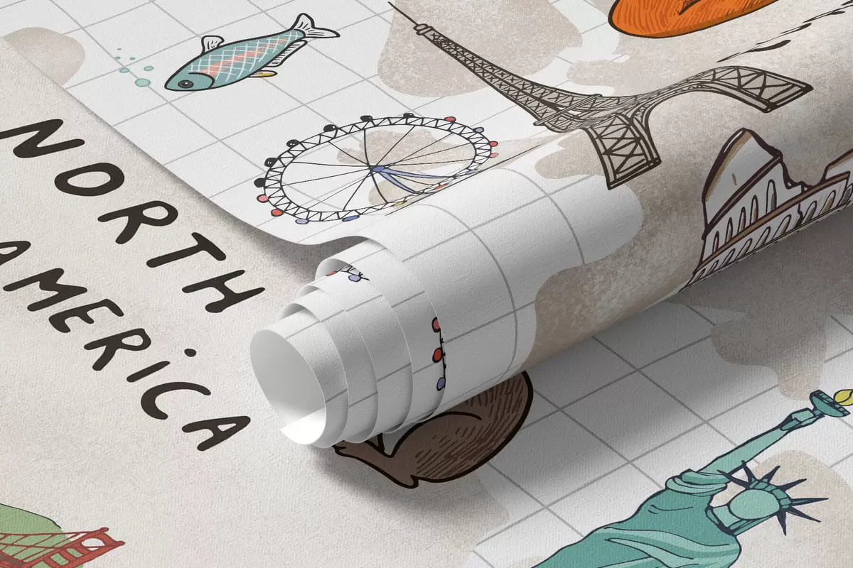 Fototapeter Verdenskart med dyr og landemerker Nr. w04011