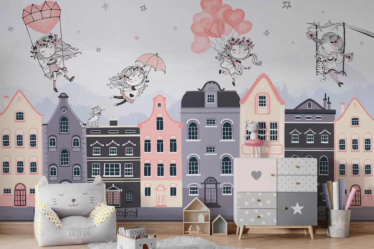 Fototapeter Bylandskap med søte jenter Nr. w04014