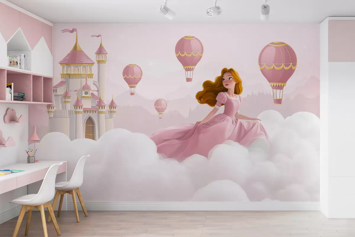 Fototapeter Prinsesse blant skyene på bakgrunn av landskapet med slottet Nr. w04015v1