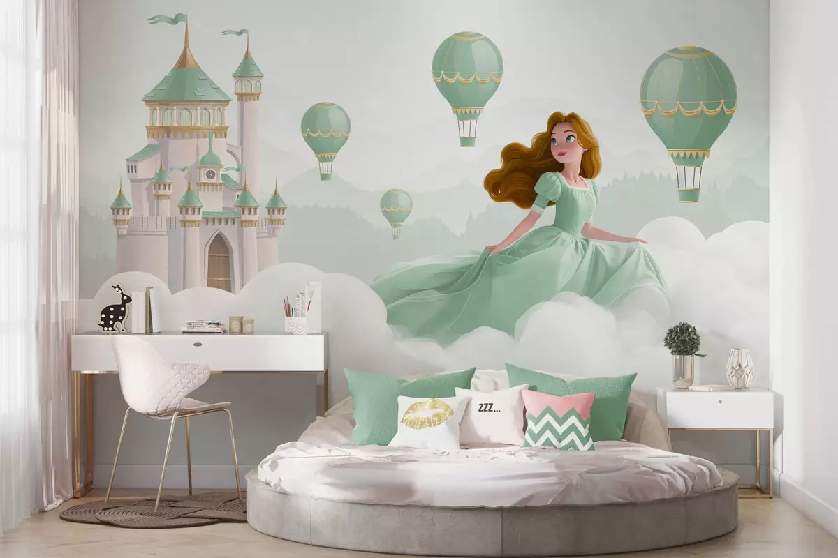 Fototapeter Prinsesse blant skyene på bakgrunn av landskapet med slottet Nr. w04015v2