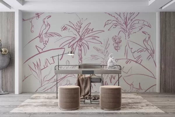 Fototapeter Tropiske linjer i rosa, tropiske planter, bananer Nr. w04020v2