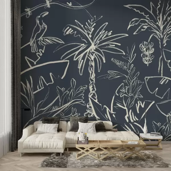 Fototapeter Tropisk mønster på mørkeblå bakgrunn, palmer, bananer Nr. w04020v4