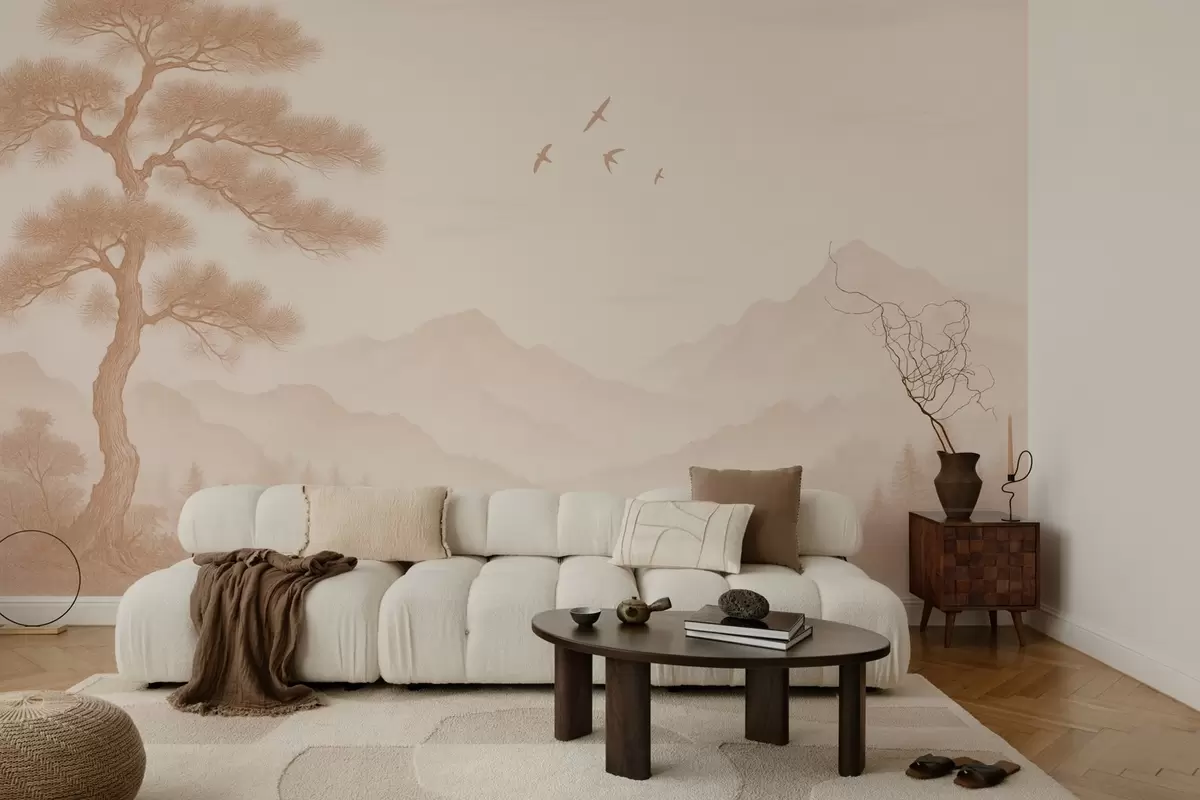 Fototapeter panorama av åser med et stort tre i mokkafarger Nr. w04033v1