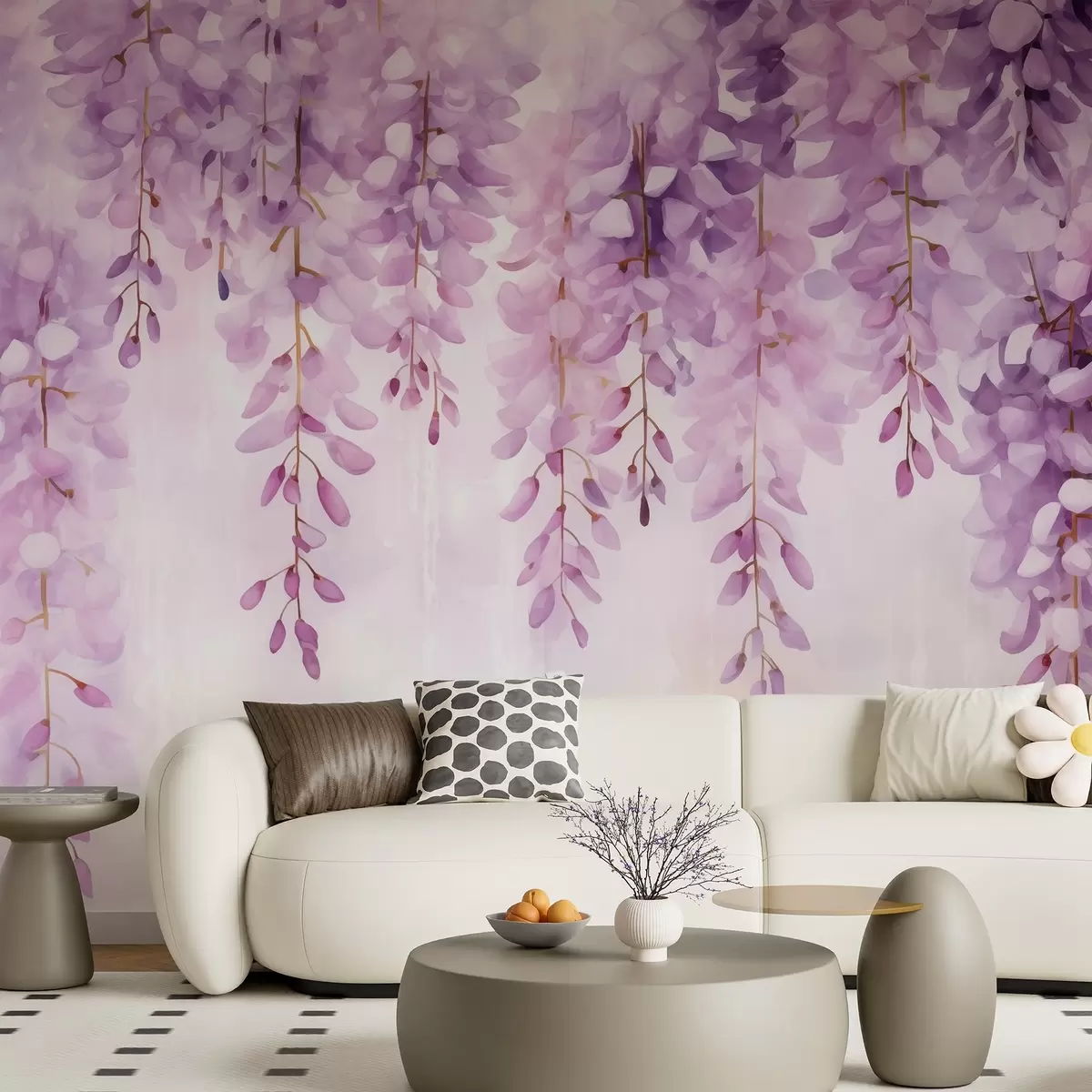 Fototapeter Delikat akvarellkomposisjon med blåregn i duse lavendel- og rosatoner som skaper en fredfull stemning, Nr. w04034