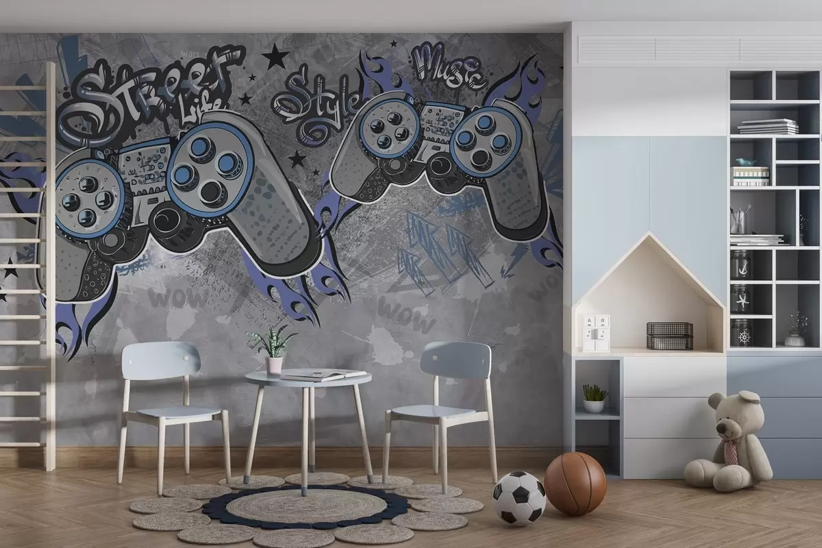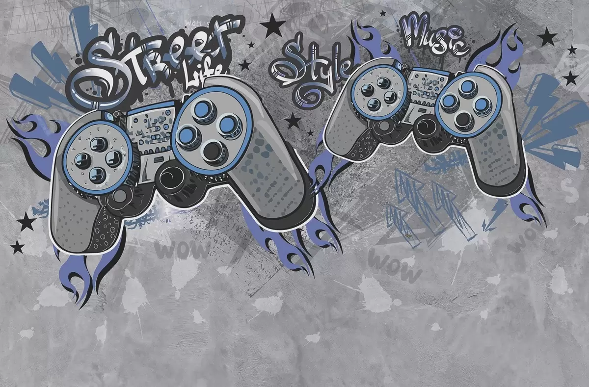 Fototapeter Konsoller i street art-stil på grungeveggen Nr. w04054