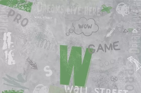 Fototapeter Design i gatekunststil med gule fargeinnskrifter på bakgrunn av betongvegg Nr. w04056