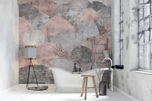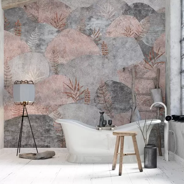 Fototapeter Steiner med planter, bregner, nordisk, rustikk stil, grå og rosa farger Nr. w04064v1
