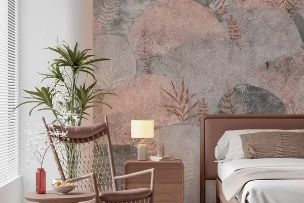 Fototapeter Steiner med planter, bregner, nordisk, rustikk stil, grå og rosa farger Nr. w04064v1
