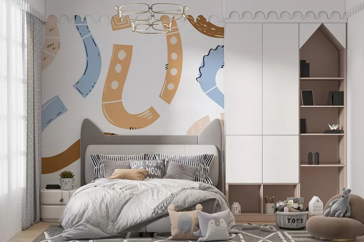 Fototapeter Abstrakte tegninger, juvenile, kruseduller, brun, blå, rosa Nr. w04066