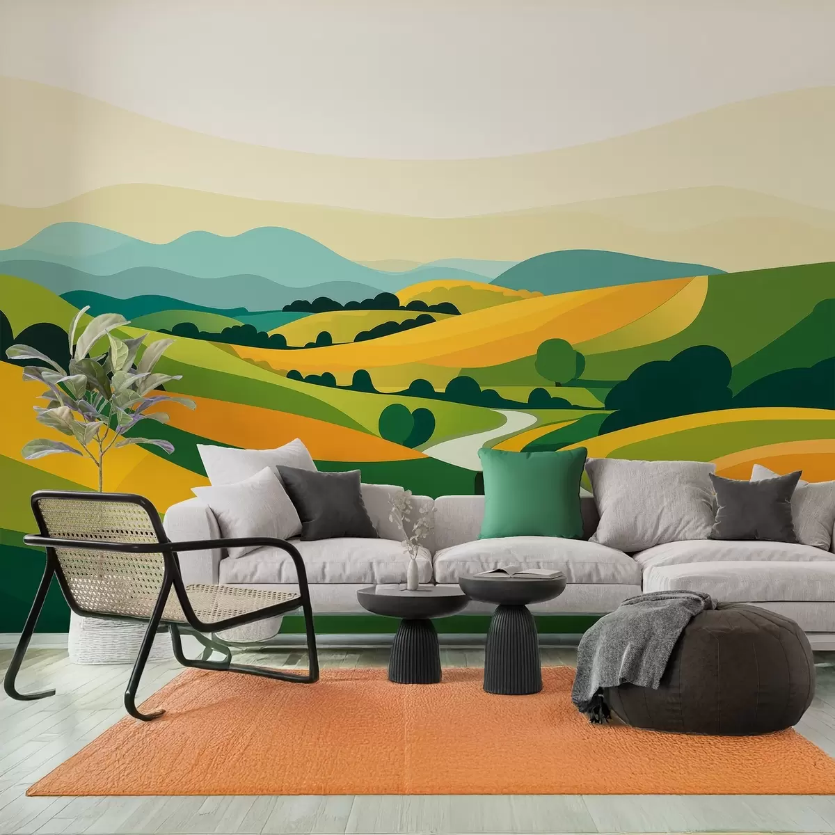 Fototapeter Abstrakt landskap med åser og trær, sterke farger Nr. w04116