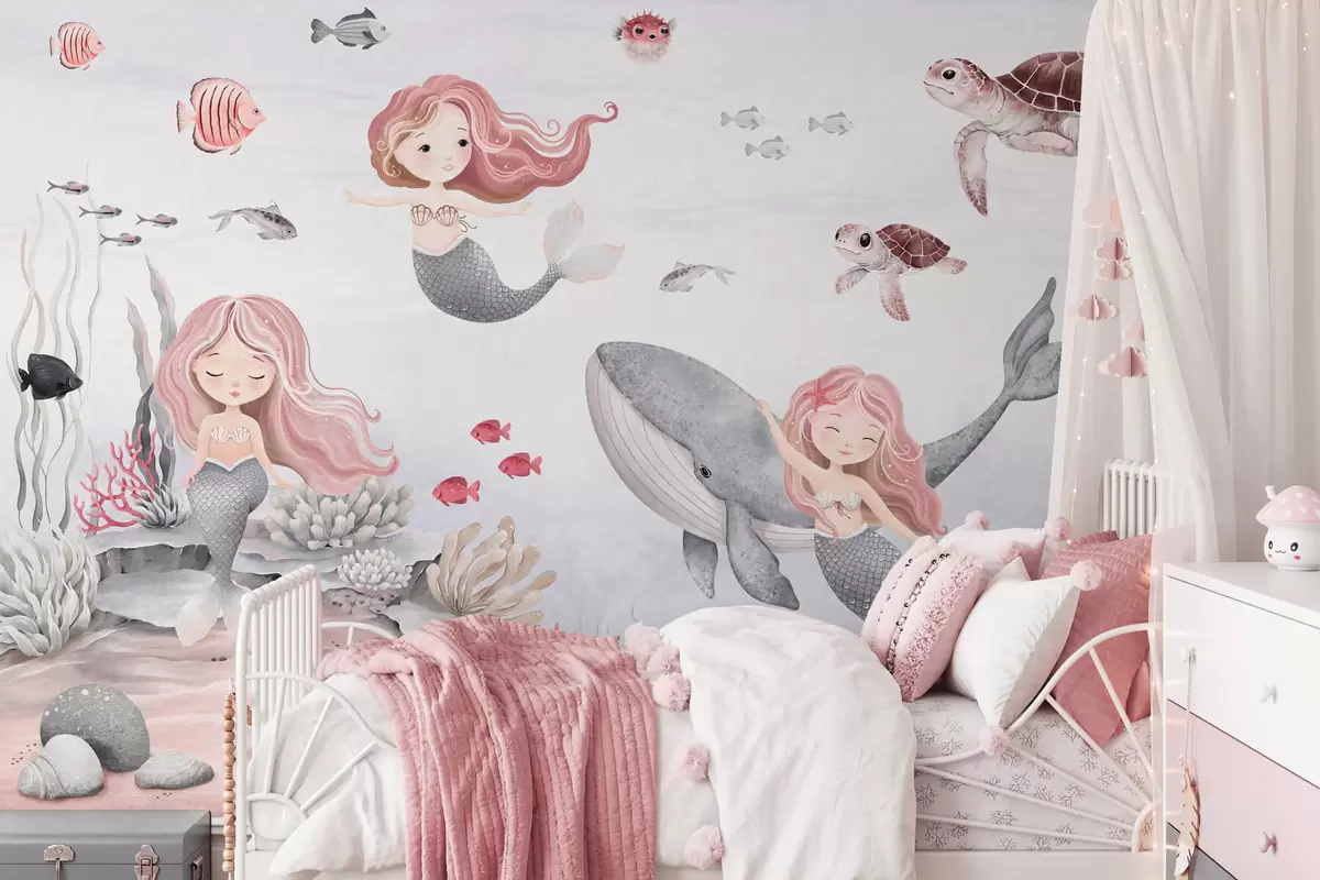 Fototapeter Undervannsverden med havfruer og fisker Nr. w04166v1