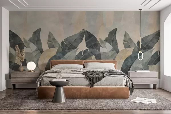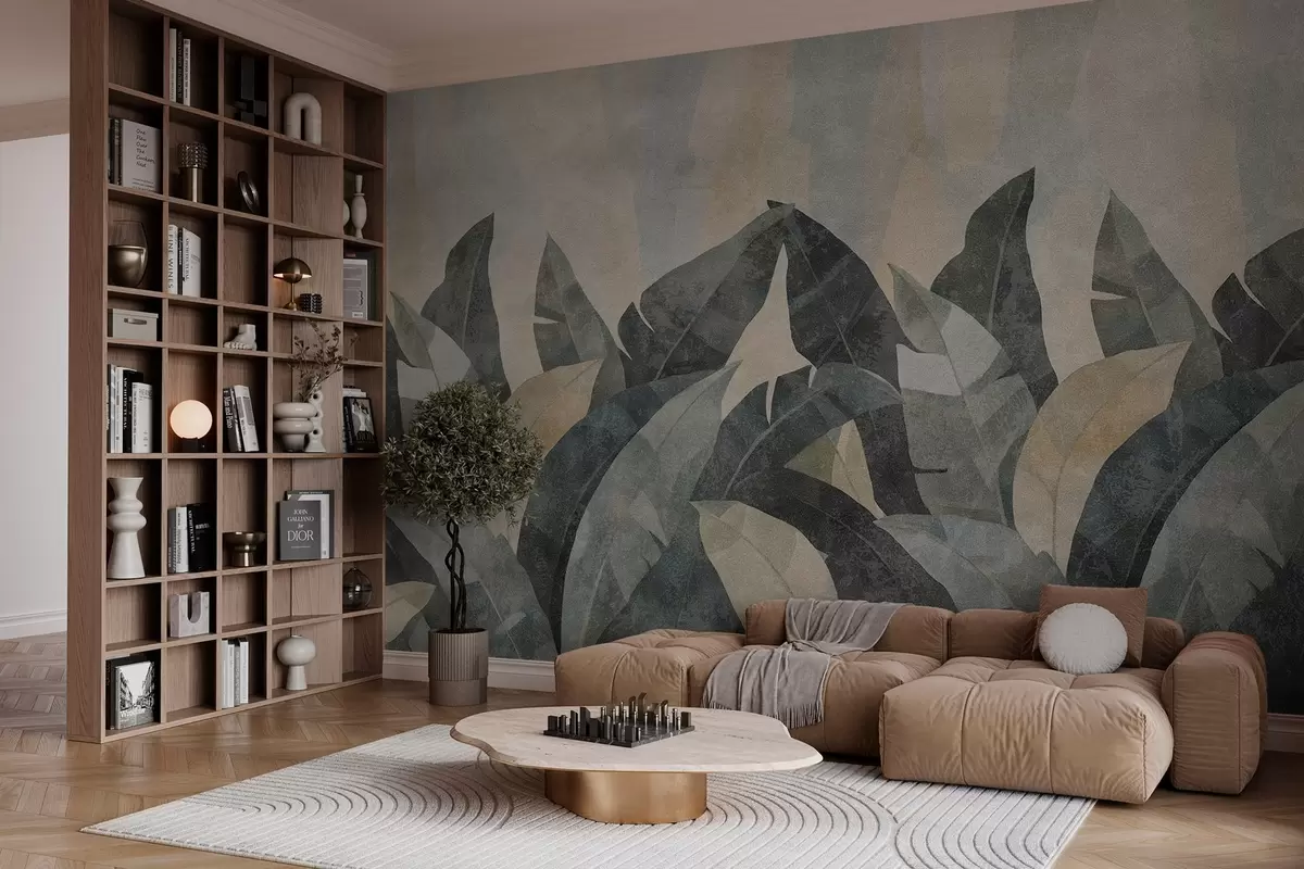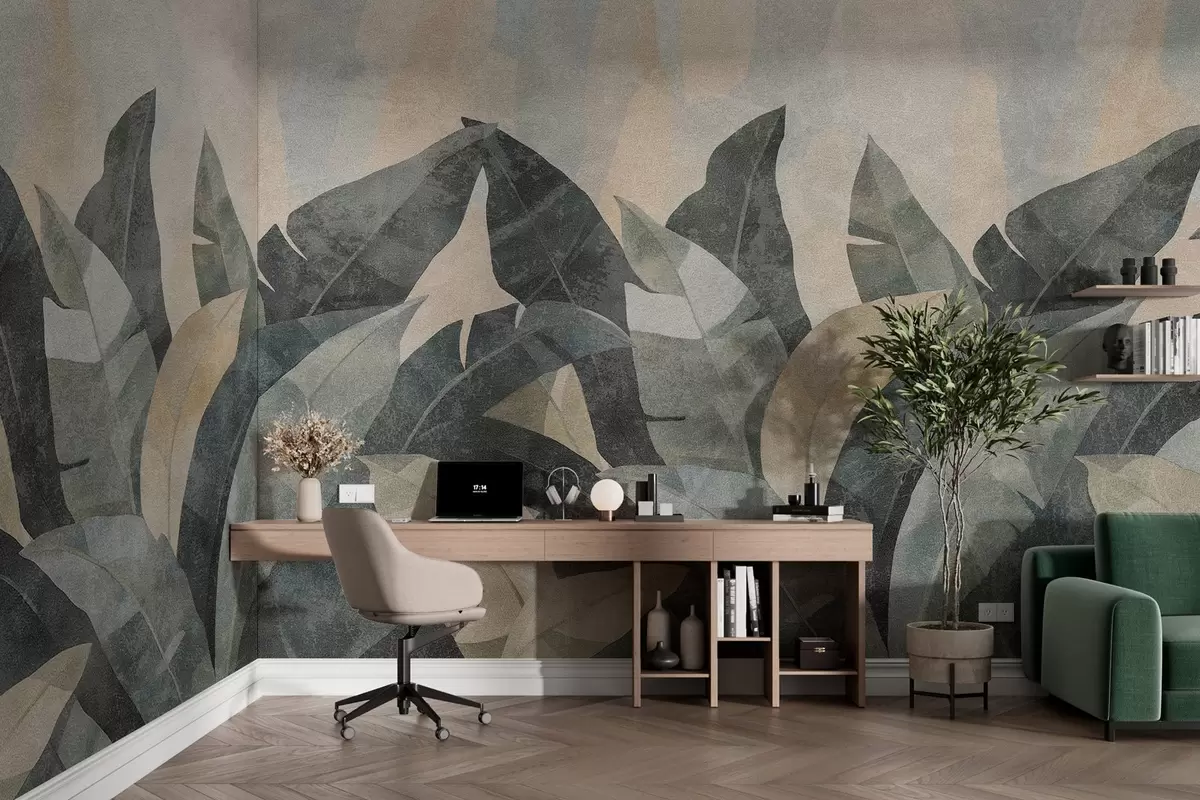 Fototapeter strukturerte bananblader i naturlige nyanser av beige, grønt og grått Nr. w04285