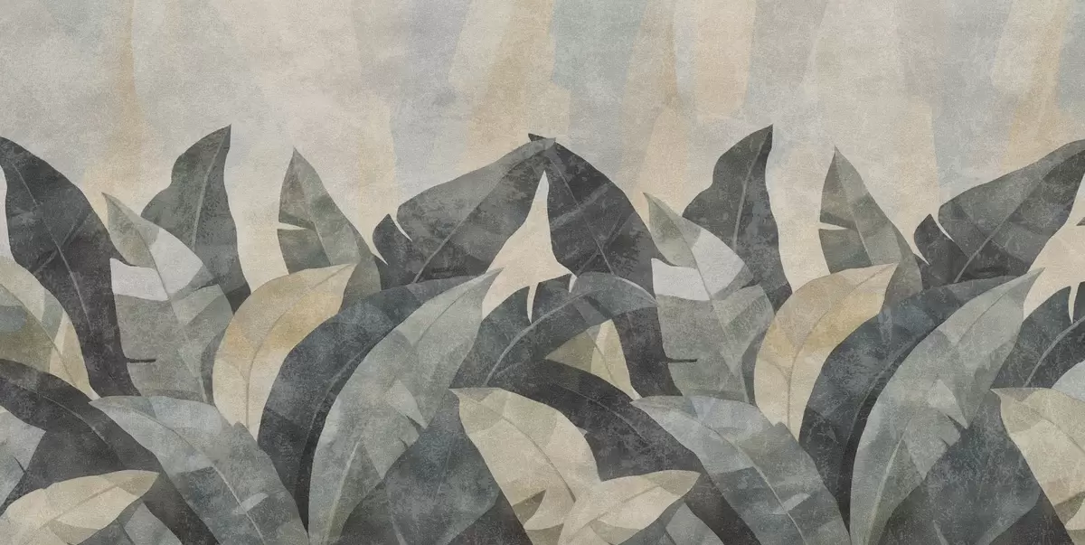 Fototapeter strukturerte bananblader i naturlige nyanser av beige, grønt og grått Nr. w04285