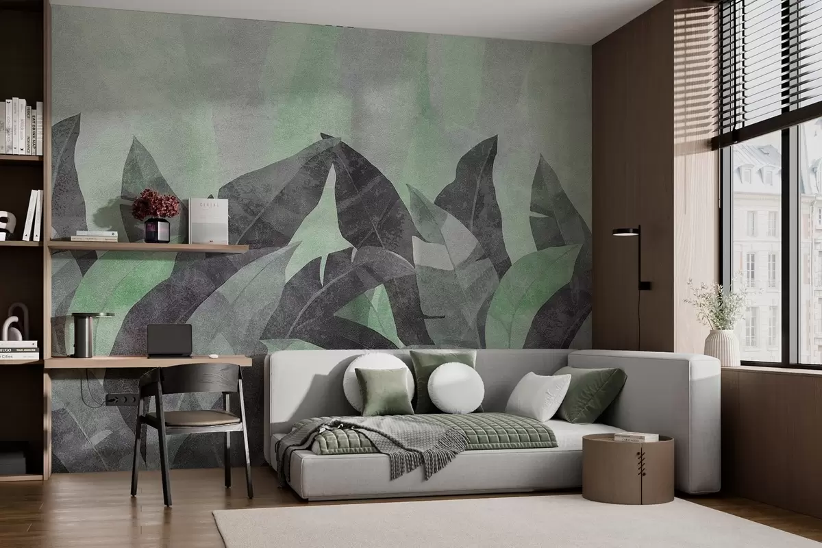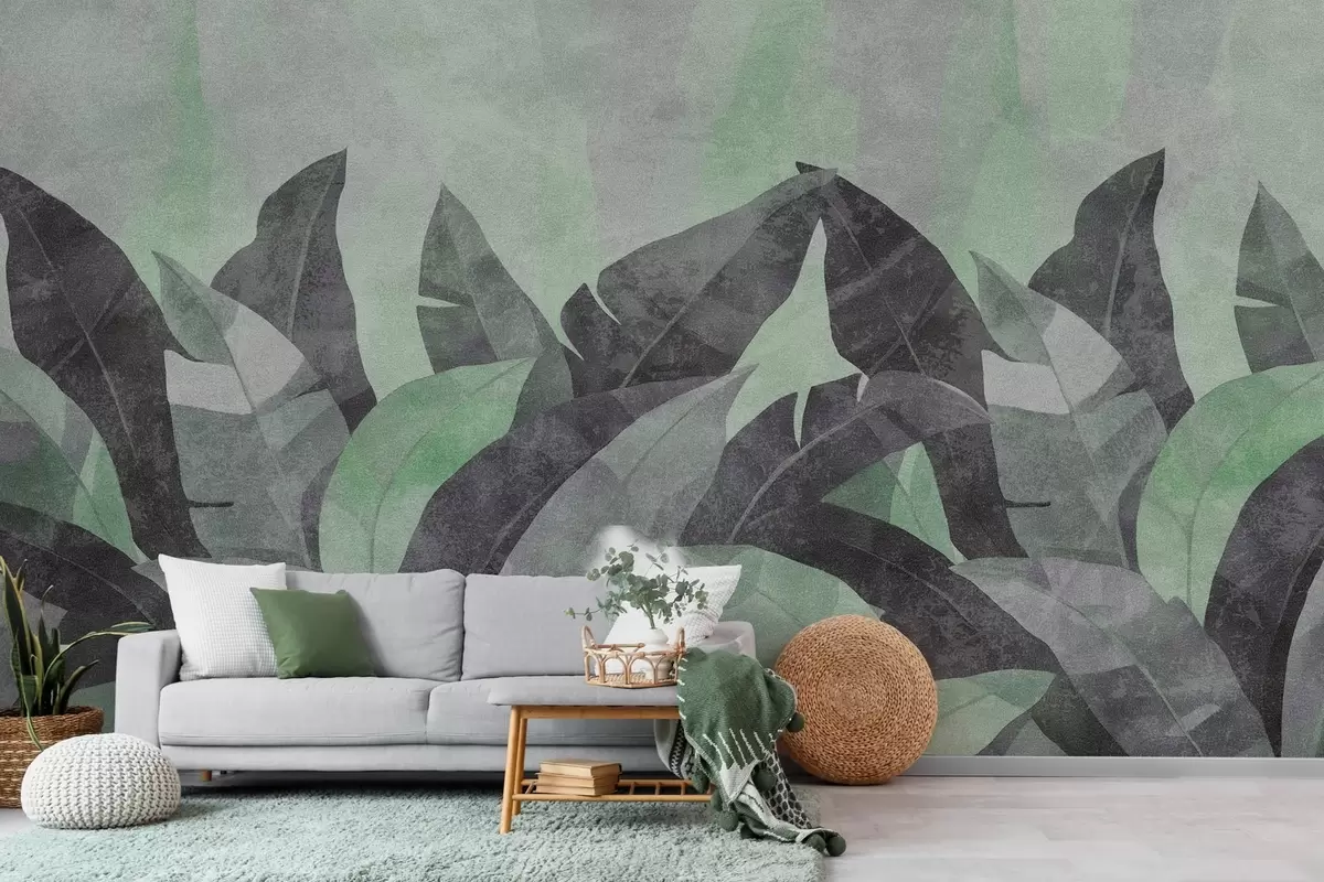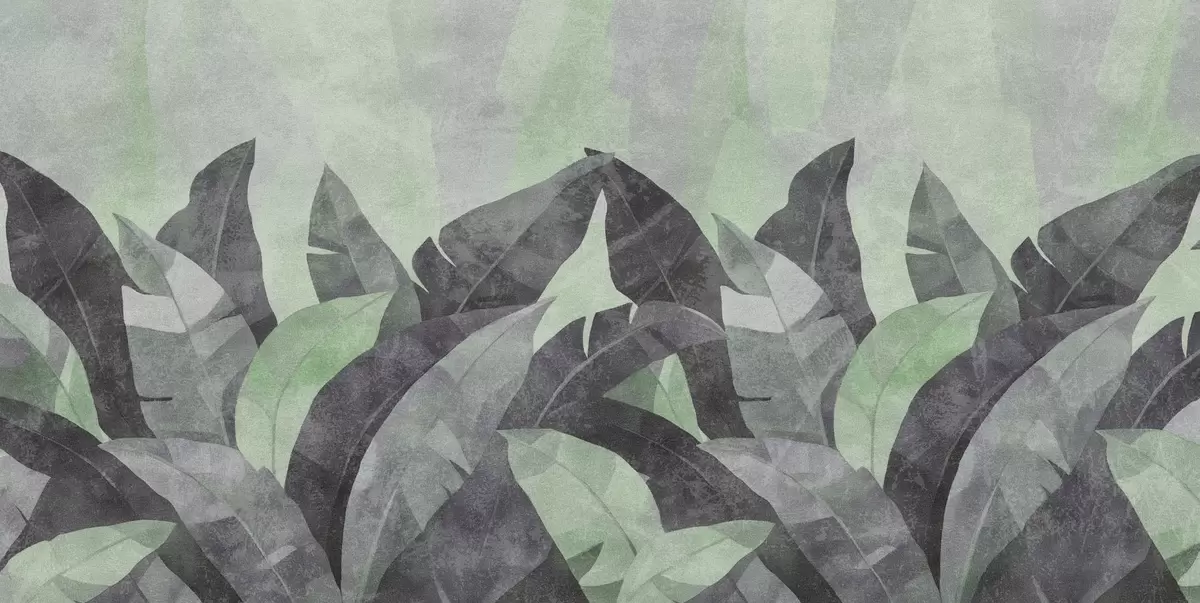 Fototapeter strukturerte bananblader i nyanser av grønt og grått Nr. w04285v1