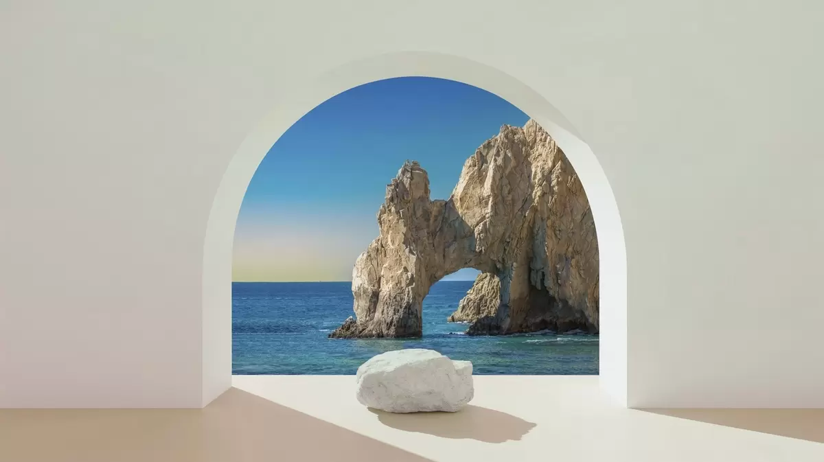 Fototapeter utsikt over havet og fjellet gjennom buen Nr. w04286