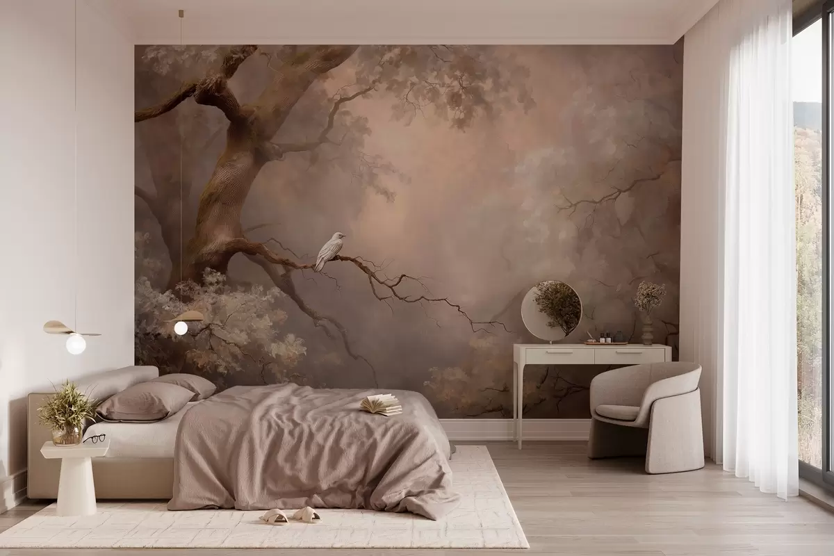 Fototapeter mystisk skog med en hvit fugl Nr. w04314