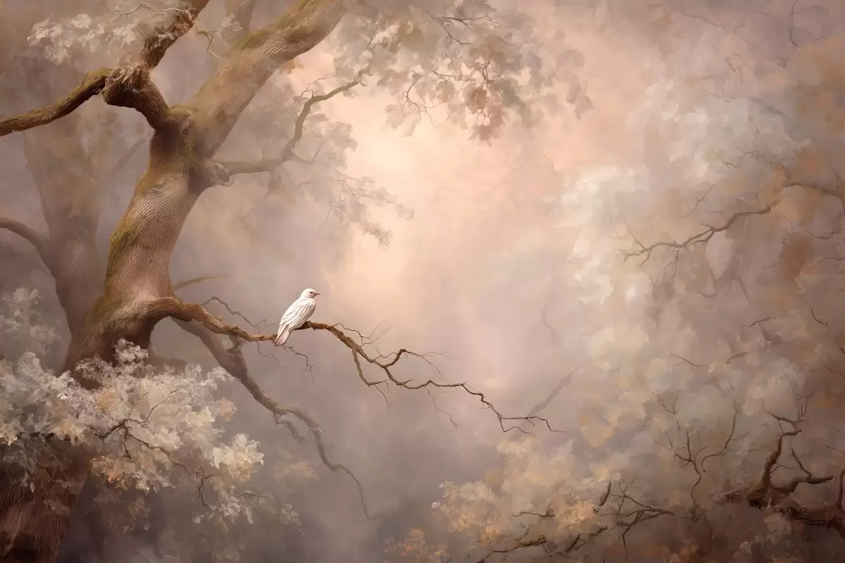 Fototapeter mystisk skog med en hvit fugl Nr. w04314