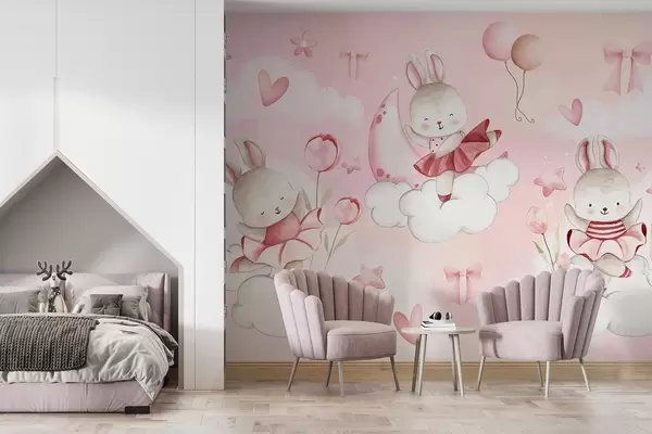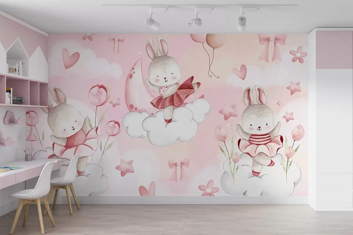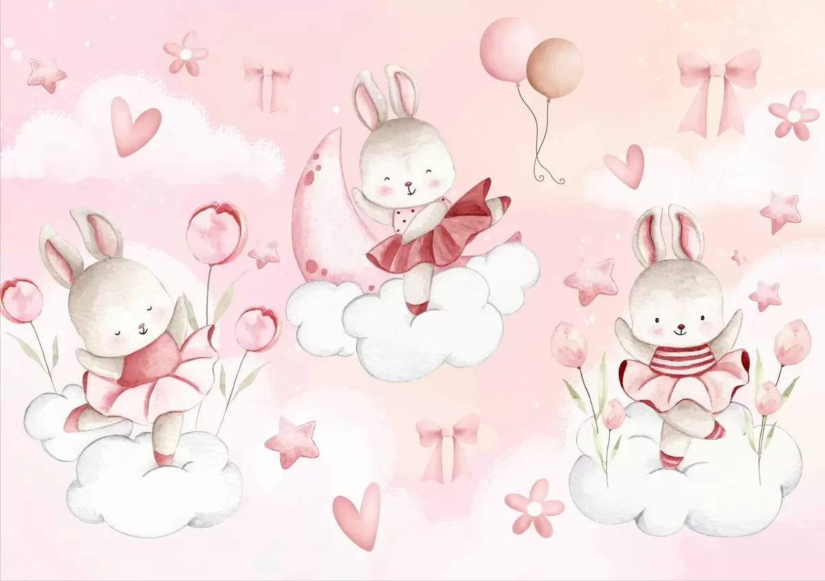 Fototapeter Kaniner i rosa ballettkjoler på skyer Nr. w04333
