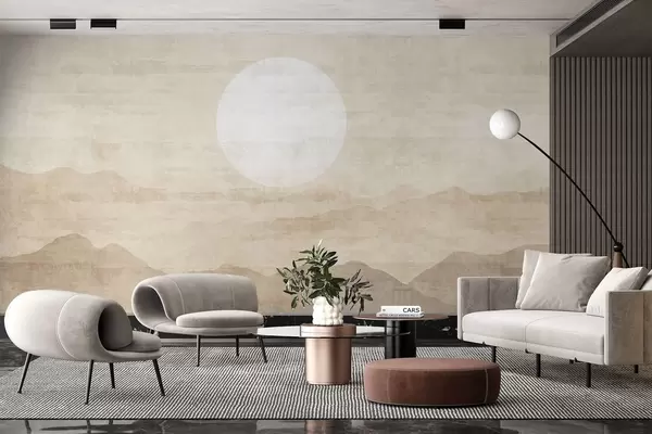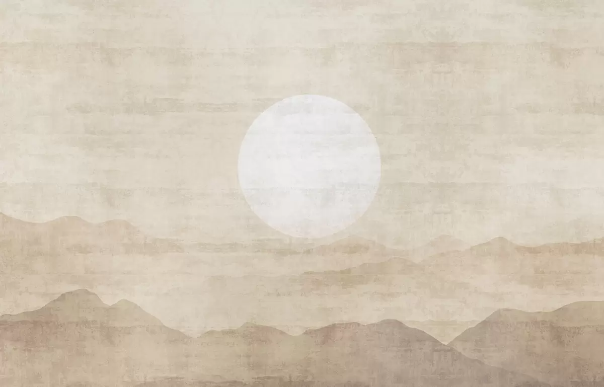 Fototapeter Minimalistisk fjellandskap med stor hvit sol Nr. w04345