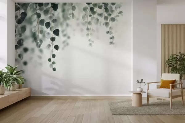 Fototapeter Fallende eukalyptus på lys bakgrunn Nr. w04393