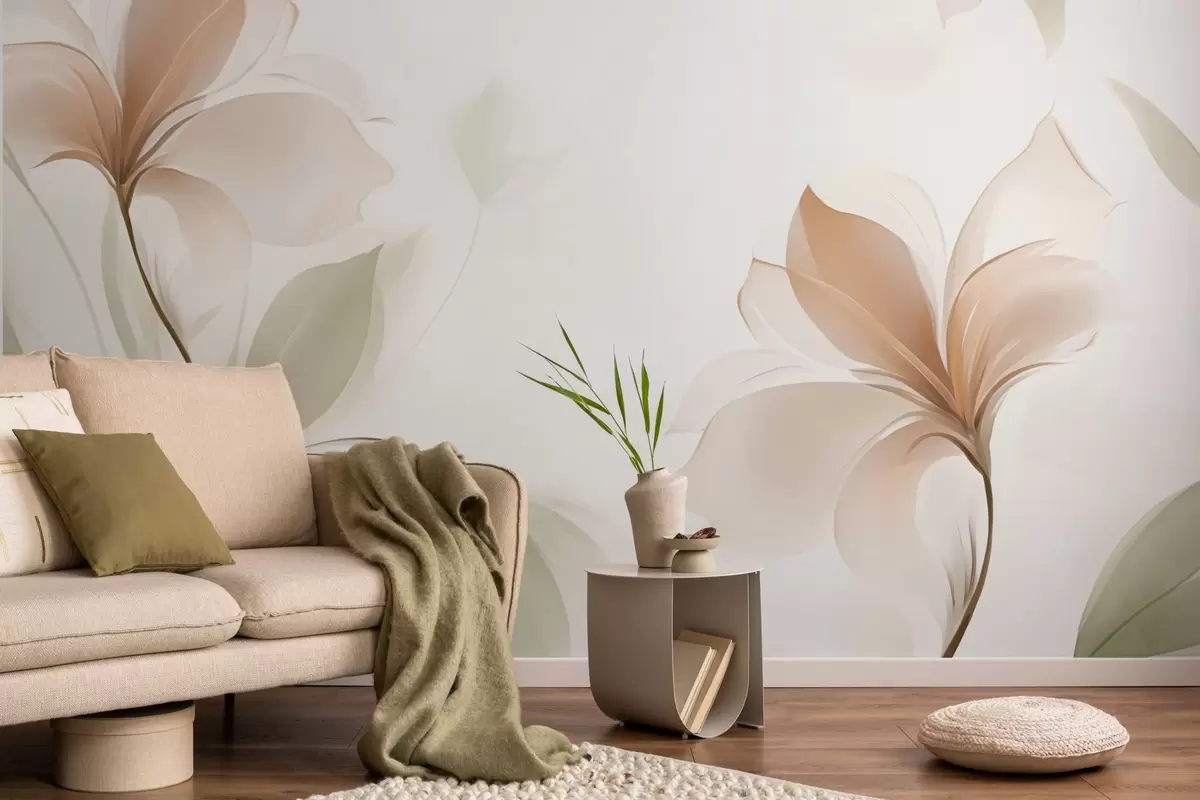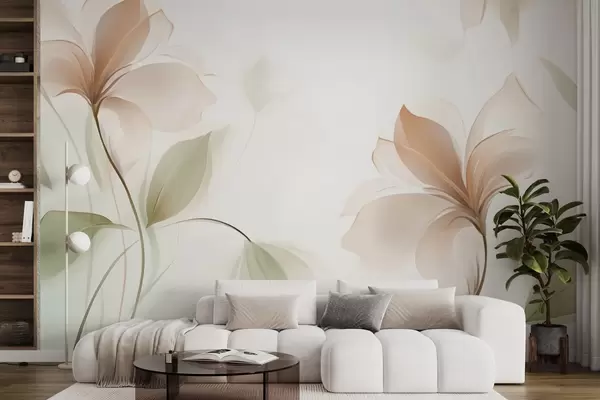 Fototapeter Transparente blomster i varme beige og rosa toner Nr. w04397