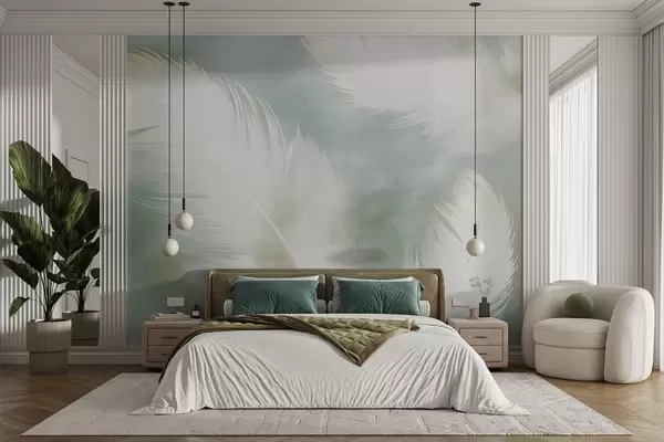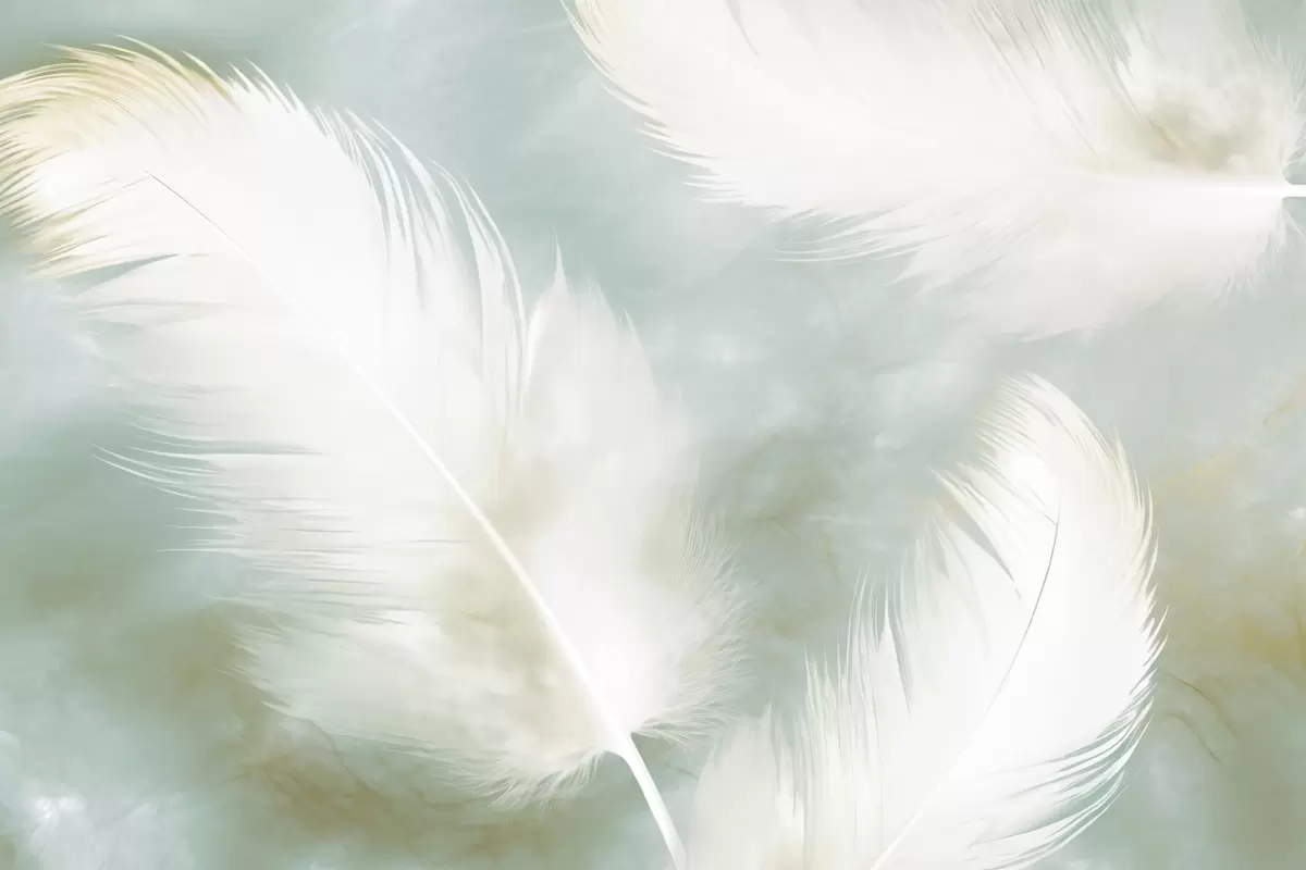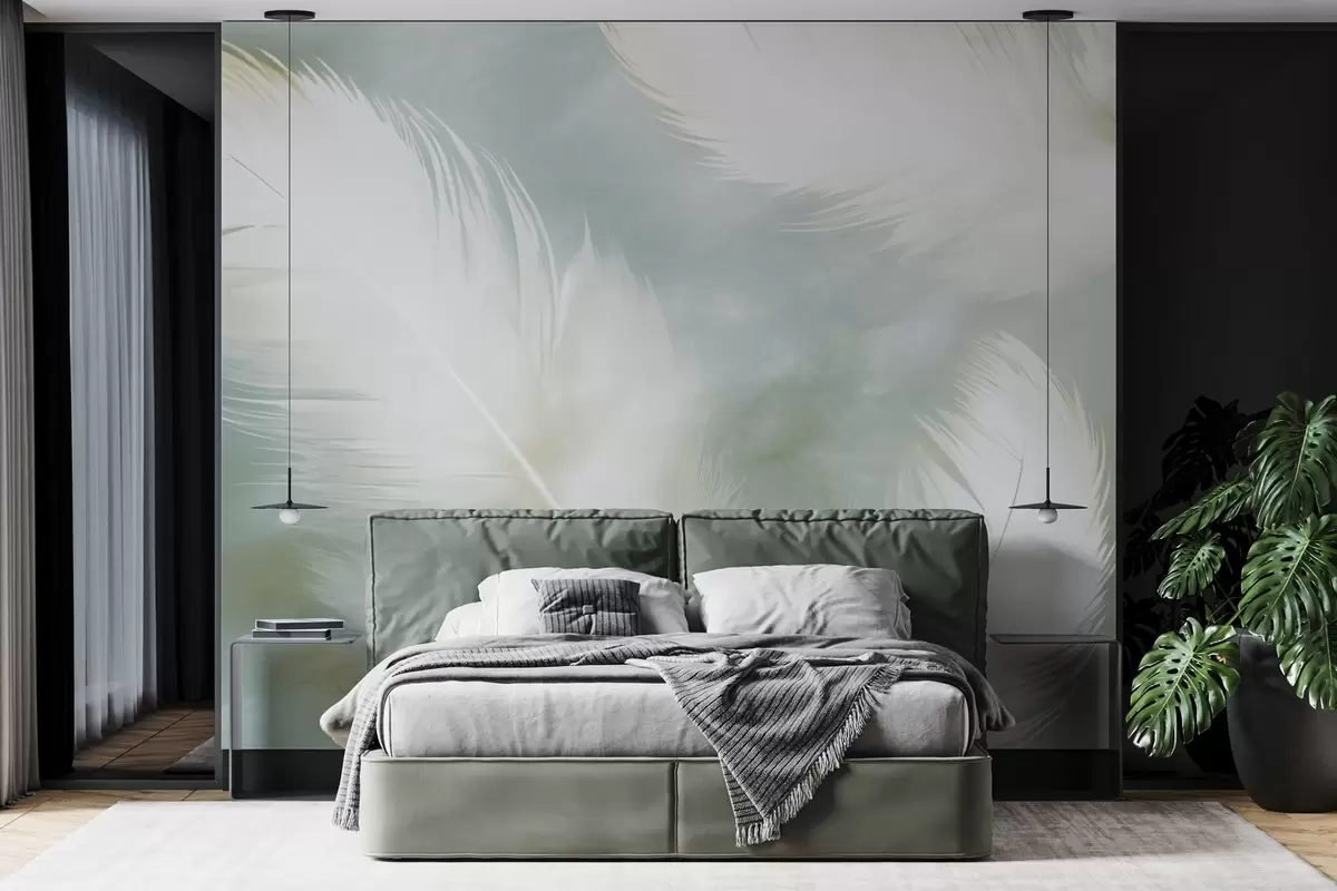 Fototapeter Delikate hvite fjær på en myk mintfarget bakgrunn Nr. w04399