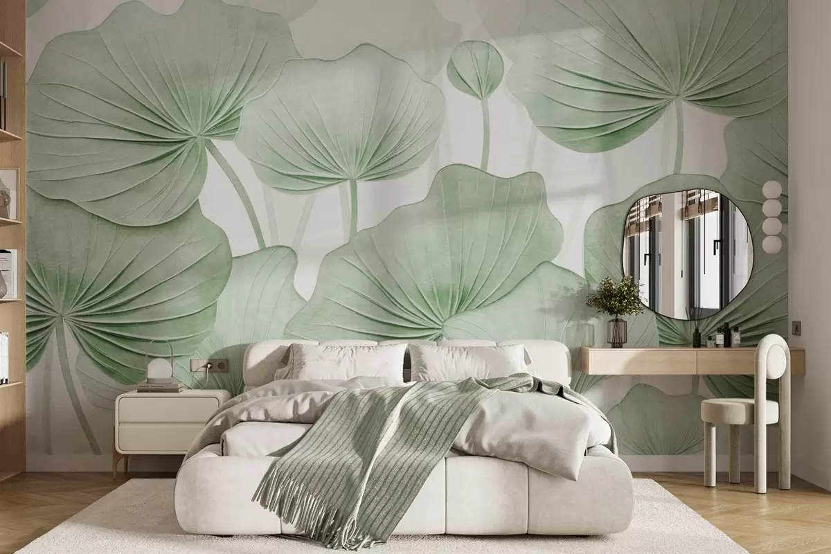 Fototapeter Lotusblader med imitert slitt tekstur Nr. w04412