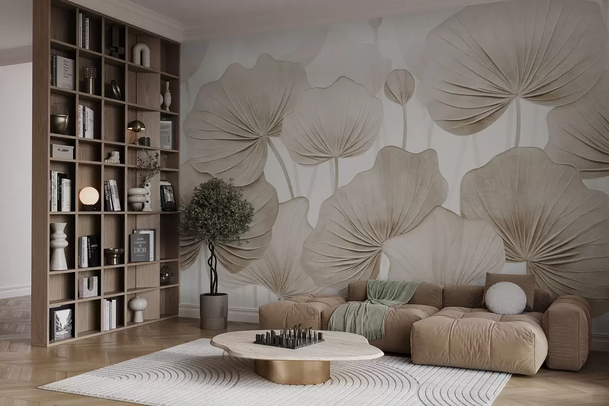 Fototapeter Lotusblader med imitert slitt tekstur Nr. w04412v1