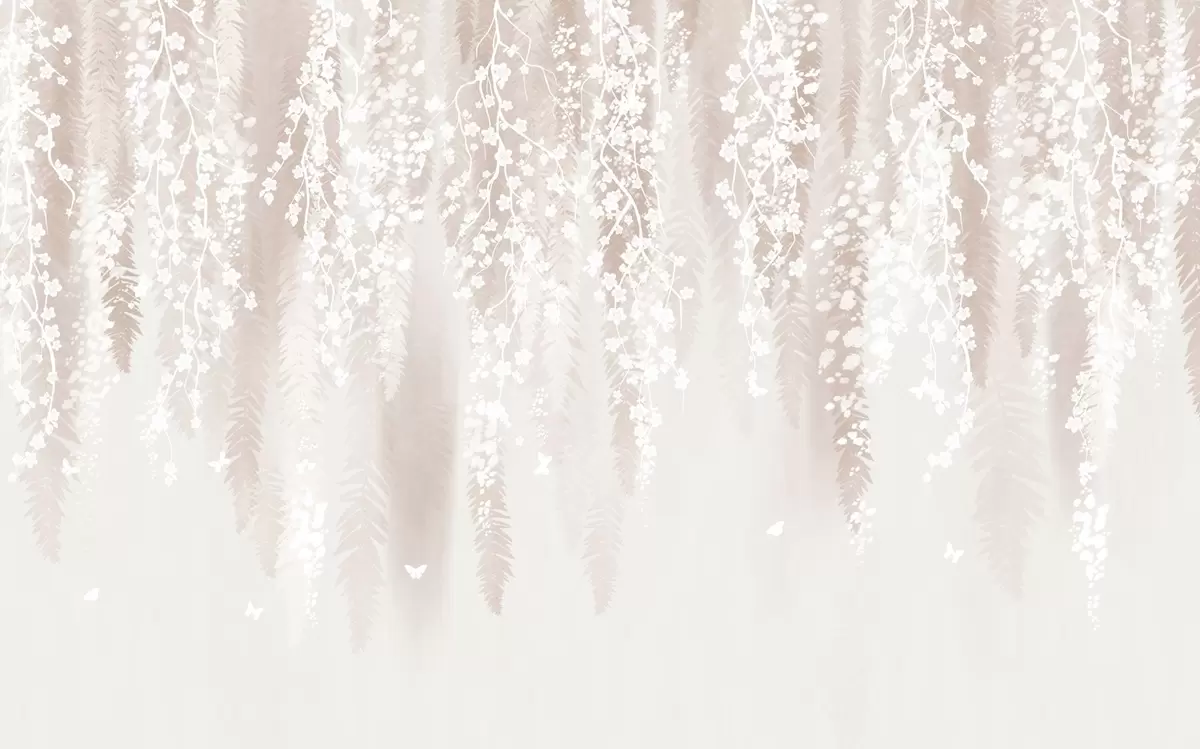 Fototapeter Lyse grener med hvite blomster på en mild bakgrunn Nr. w04417