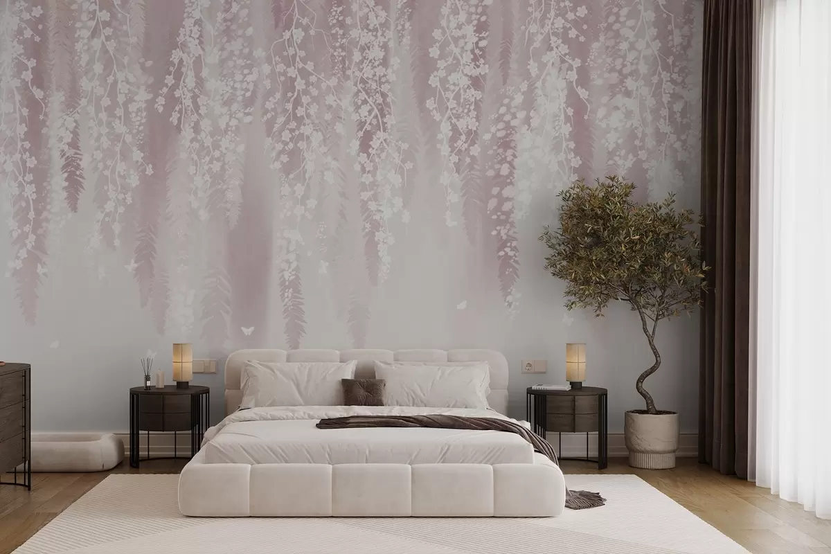 Fototapeter Rosa versjon av grener med hvite blomster Nr. w04417v1