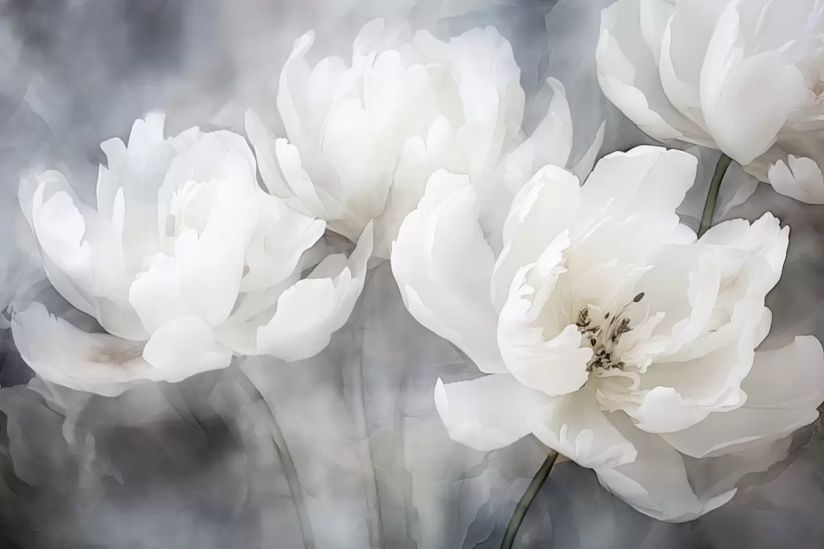fototapeter Hvite blomster på en tåkete, delikat bakgrunn w04441