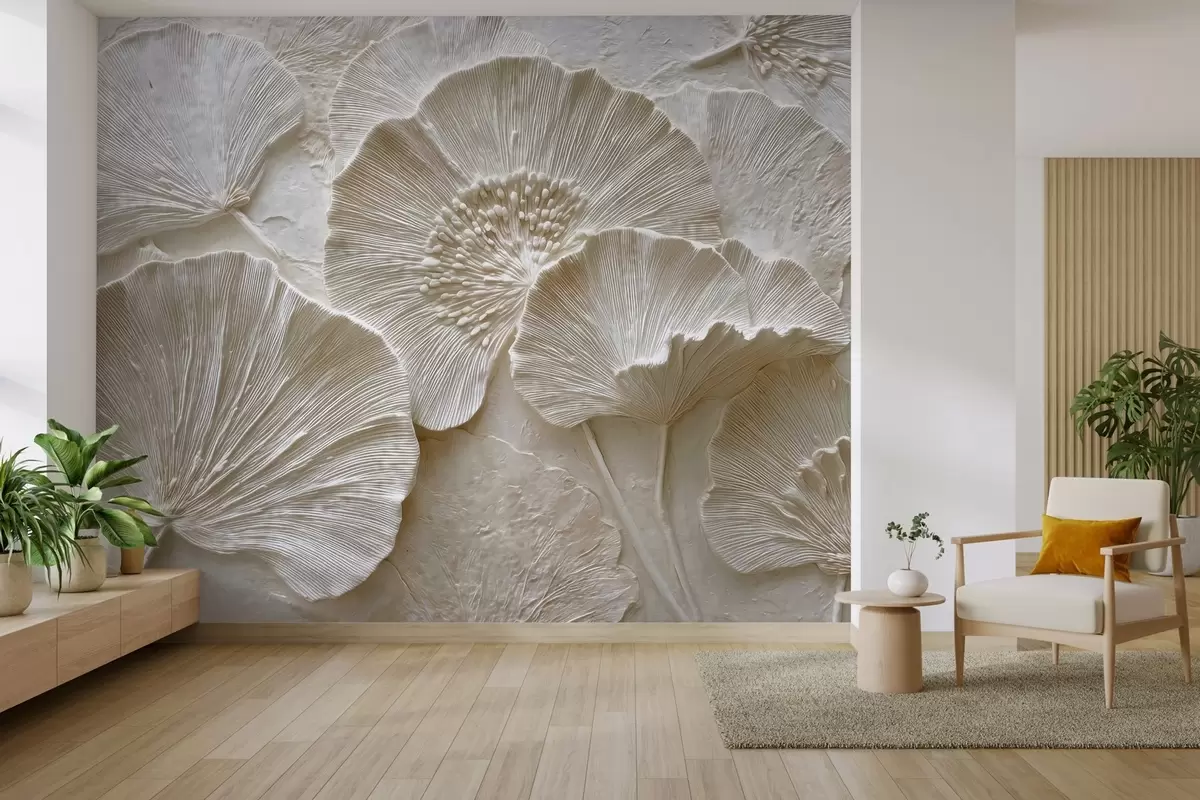 Fototapeter Voluminøse ginkgoblader i en lett preget stil Nr. w04444