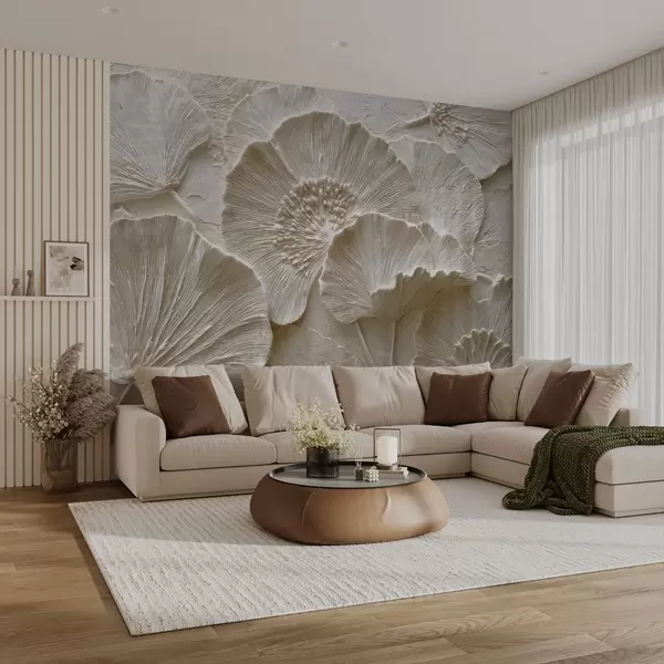 Fototapeter Voluminøse ginkgoblader i en lett preget stil Nr. w04444