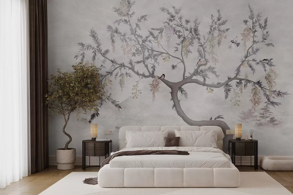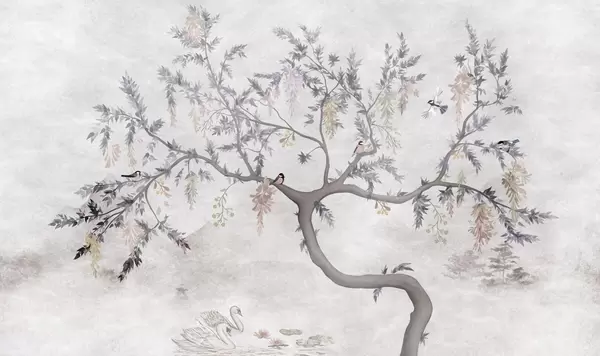 fototapeter Tregren med fugler i orientalsk stil w04456