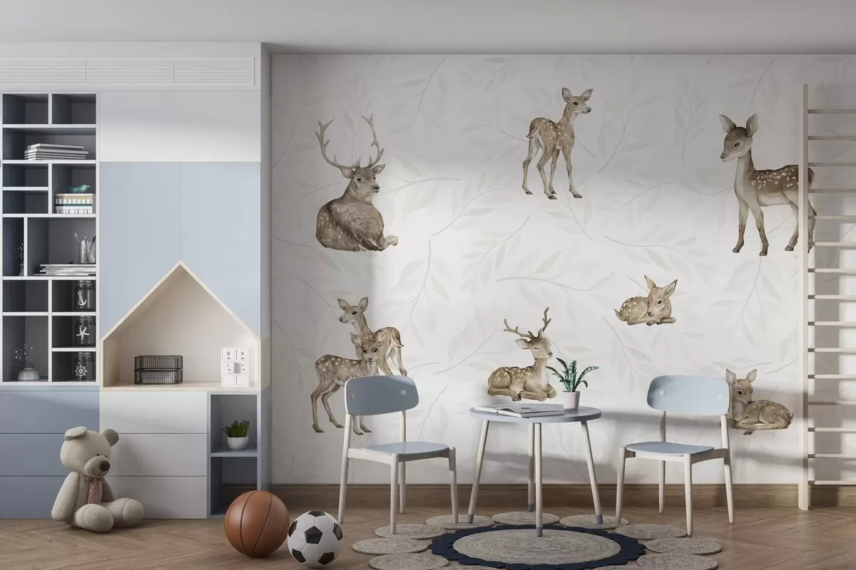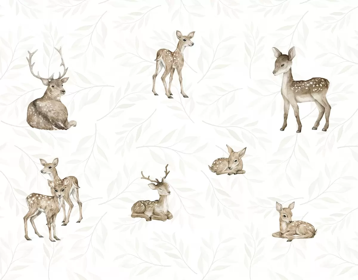 Fototapeter Søte kalver på en lys bakgrunn med kvister Nr. w04461