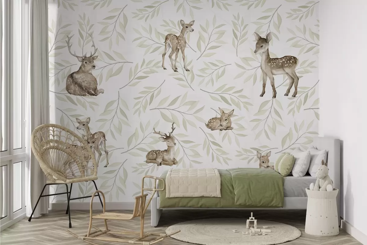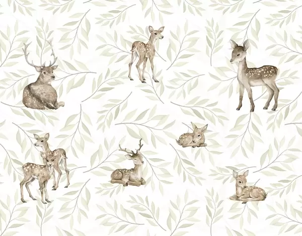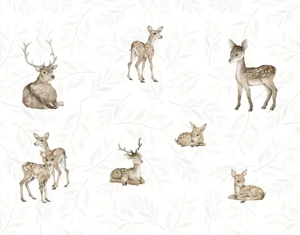 Fototapeter Fawns blant grønne blader på hvit bakgrunn Nr. w04461v1