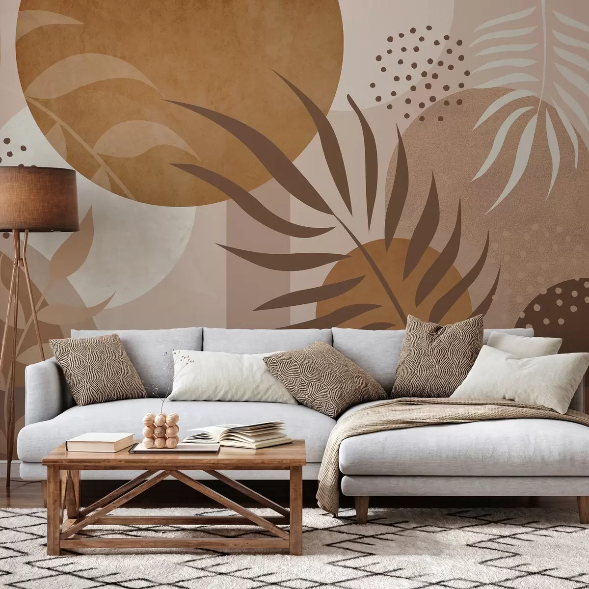 Fototapeter Moderne abstraksjon med planter i brune og beige toner Nr. w04497