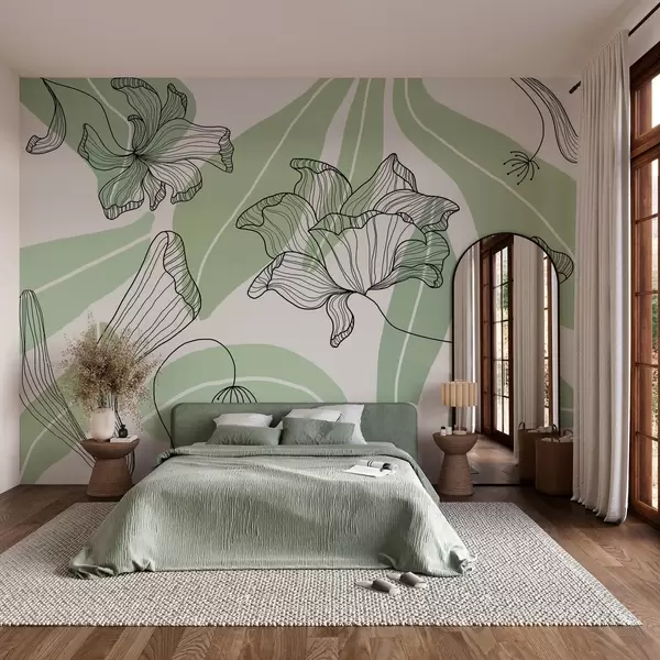 Fototapeter abstrakte blader og blomster i grønne toner Nr. w04499v1