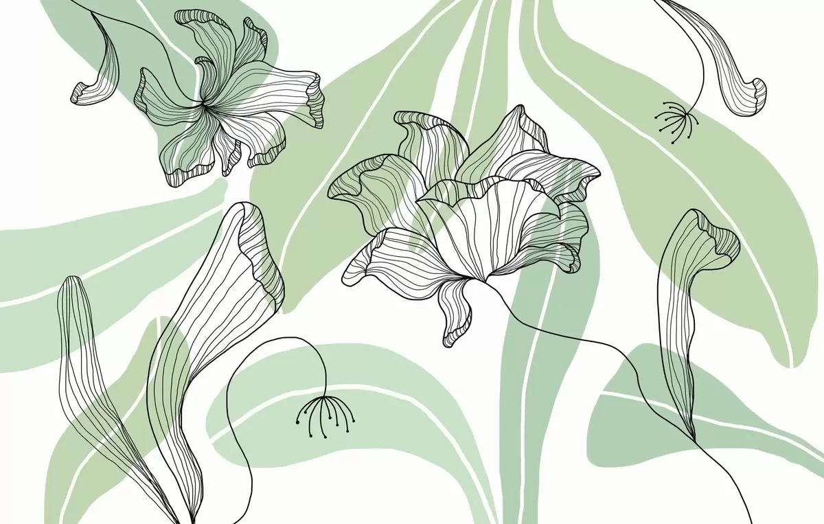 Fototapeter abstrakte blader og blomster i grønne toner Nr. w04499v1