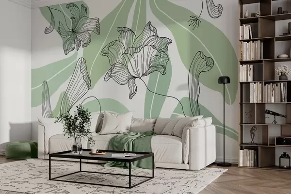 Fototapeter abstrakte blader og blomster i grønne toner Nr. w04499v1