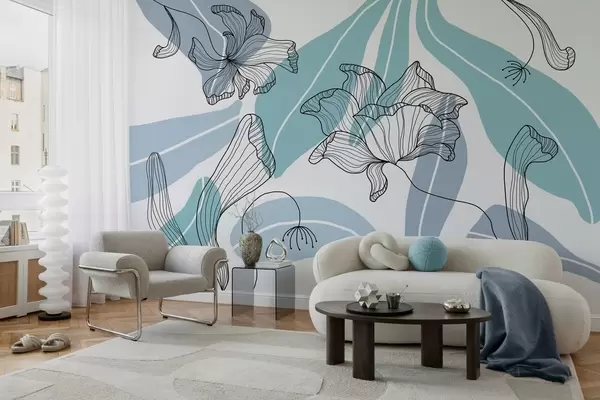 Fototapeter abstrakte blader og blomster i blå toner Nr. w04499v2