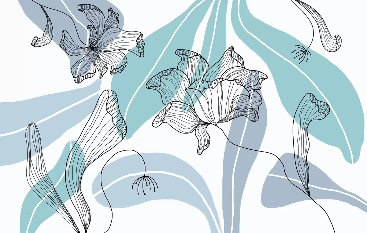 Fototapeter abstrakte blader og blomster i blå toner Nr. w04499v2