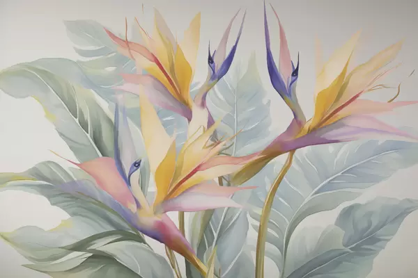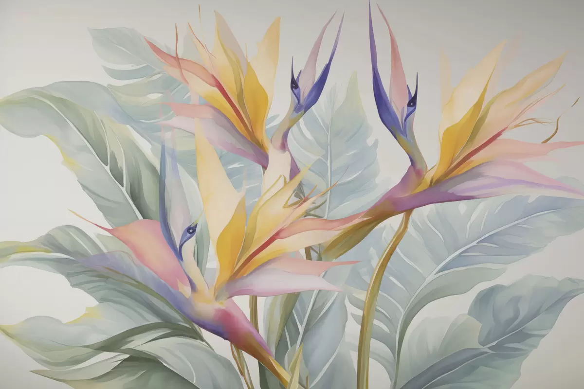 Fototapeter Strelitzia blomster og blader Nr. w04527