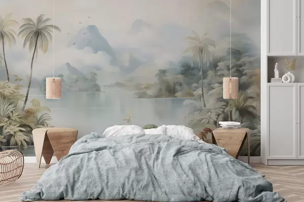 Fototapeter Elv i jungelen nær fjellene Nr. w04536