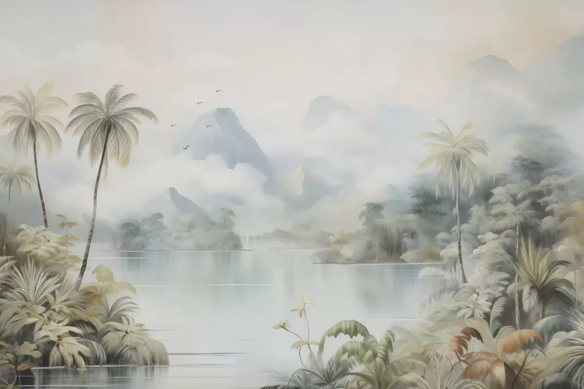Fototapeter Elv i jungelen nær fjellene Nr. w04536